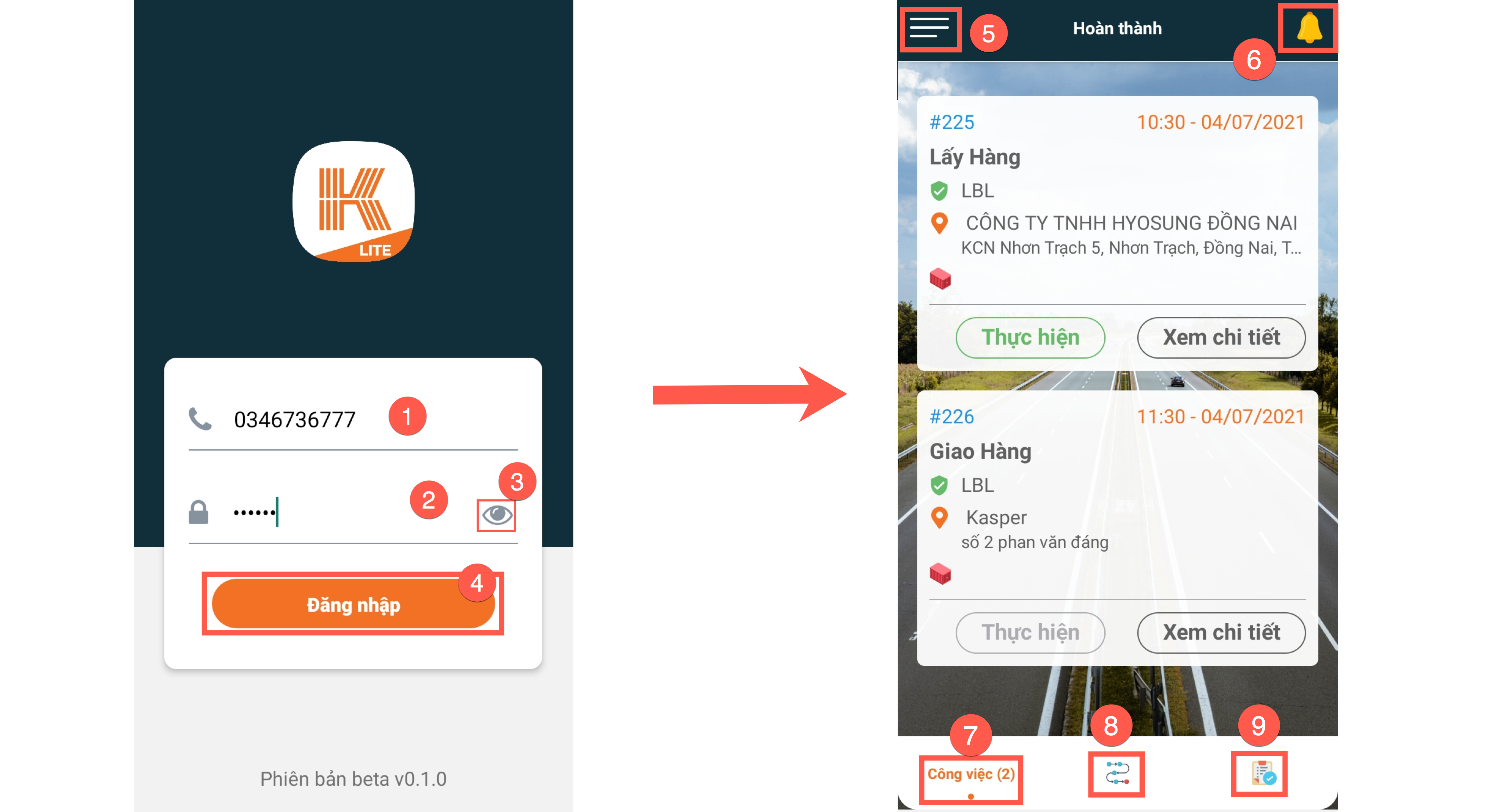 - (9): Nơi hiển thị các công việc đã hoàn thành