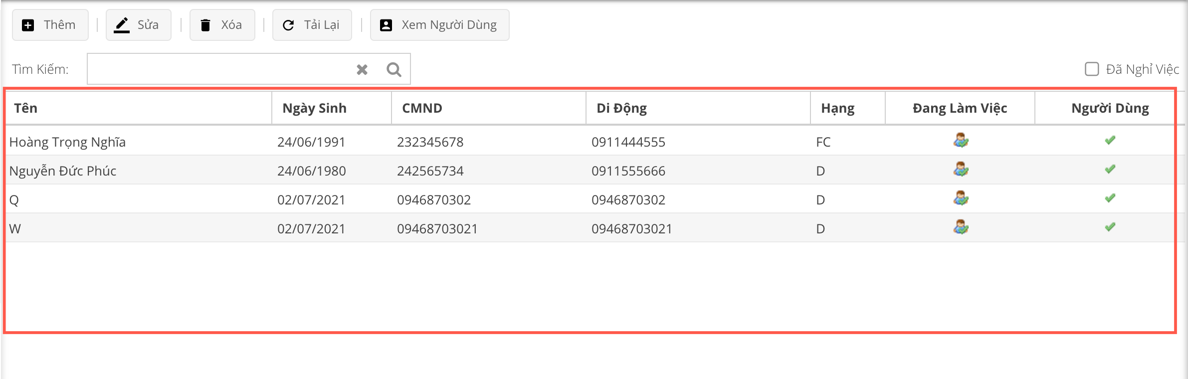- Tài xế chuyển sang trạng thái Nghĩ việc, không còn hiển thị trong Khung hiển thị danh sách các tài xế