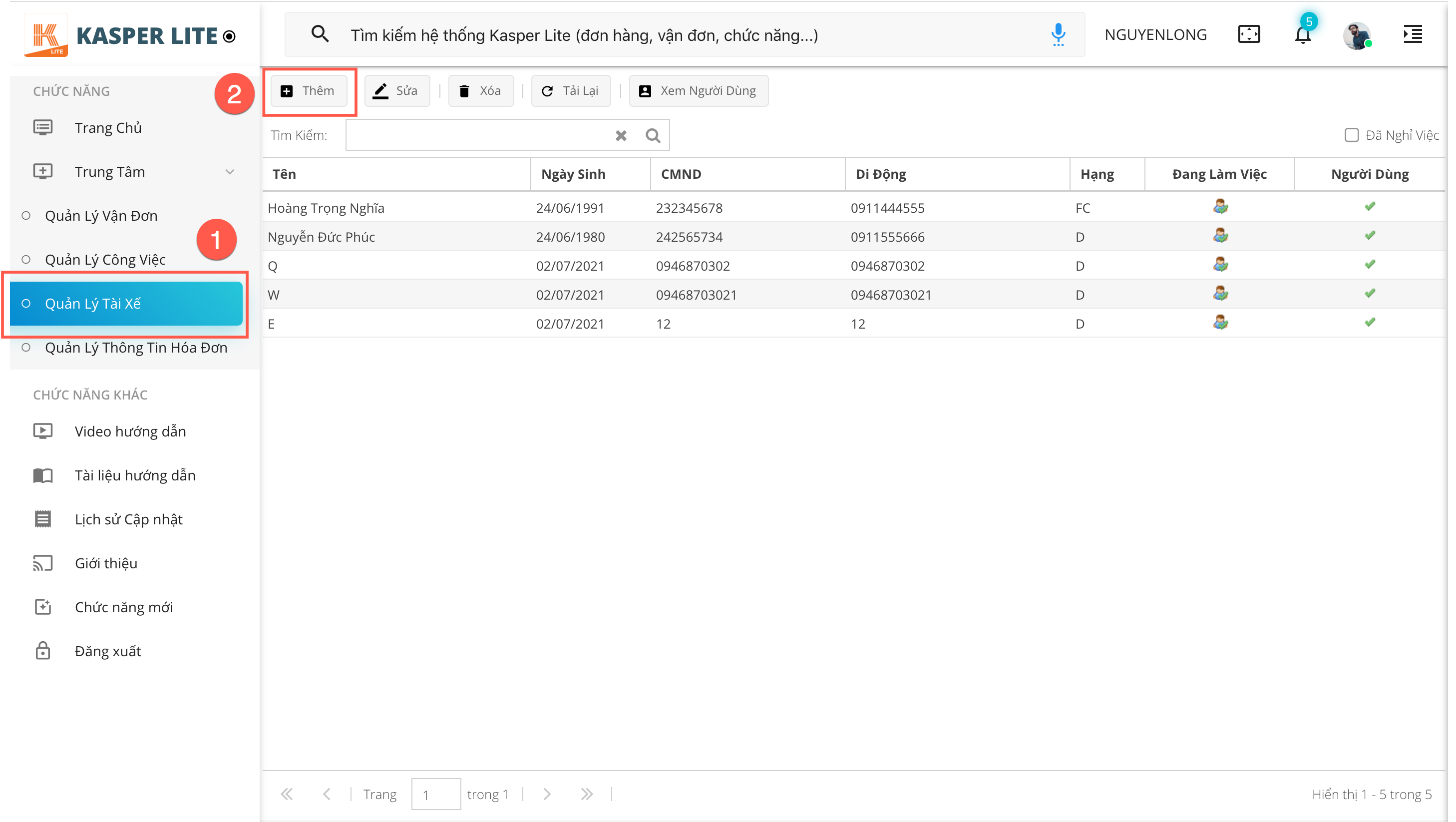 - (2): Bấm nút Thêm để thêm tài xế mới