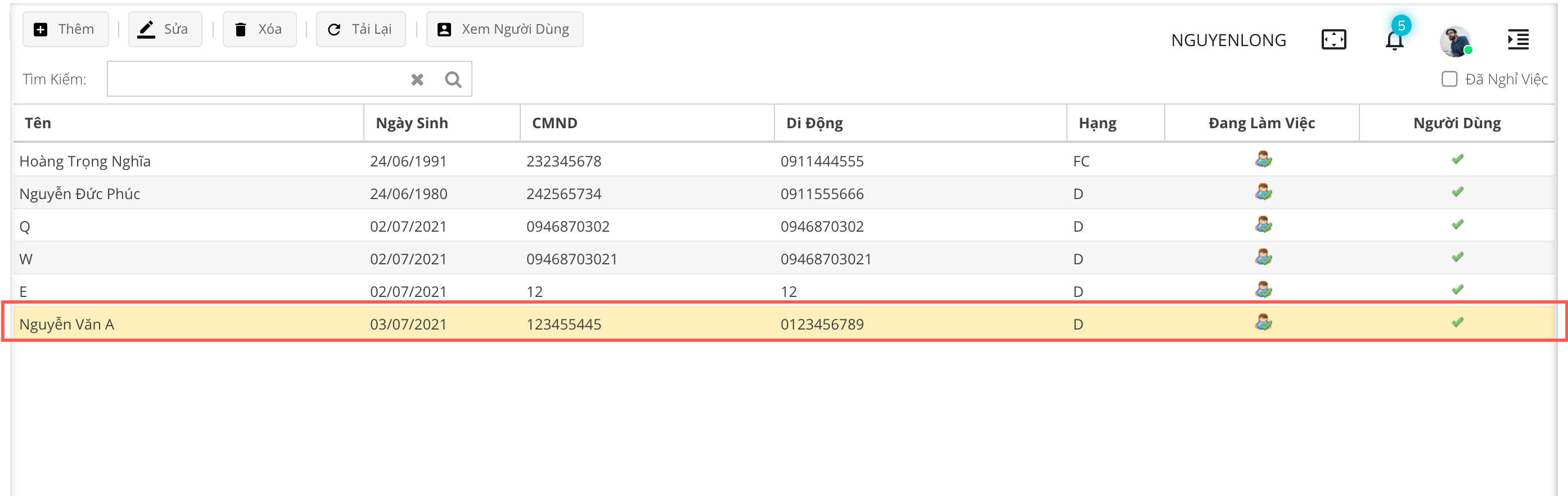 Kết quả: Thêm tài xế mới thành công, thông tin cơ bản của tài xế được hiên thị trong Khung hiển thị danh sách các tài xế.