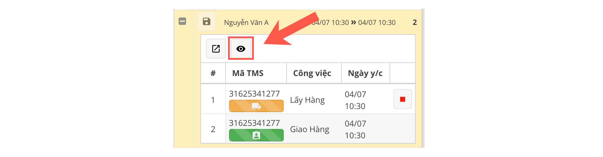 - Bấm vào nút Xem chi tiết. Hệ thống hiển thị cửa sổ danh sách công việc của tài xế: